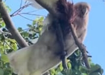 T2703006_couple found weak parrot stuck in tree branch then